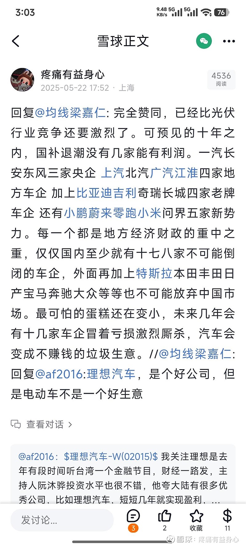 我目前并未持有小米、蔚小理的股票。去年 5 月提出一些小米小鹏的问题,因遭遇小米小鹏股东的恶意言语攻击,我彻底清仓了小米和小鹏的股票;而基于对理想产品力的认可,我一直持有其股票,直到 11 月理想销量崩盘才选择止损离场,最终亏损 23%。随后,我将新能源板块的资金转移至新消费领域,布局了泡泡玛特、老庙黄金、蜜雪冰城等标的;今年有世界杯,这两个月会陆续入手青岛啤酒、五粮液、海底捞等快消品股票做埋伏。
