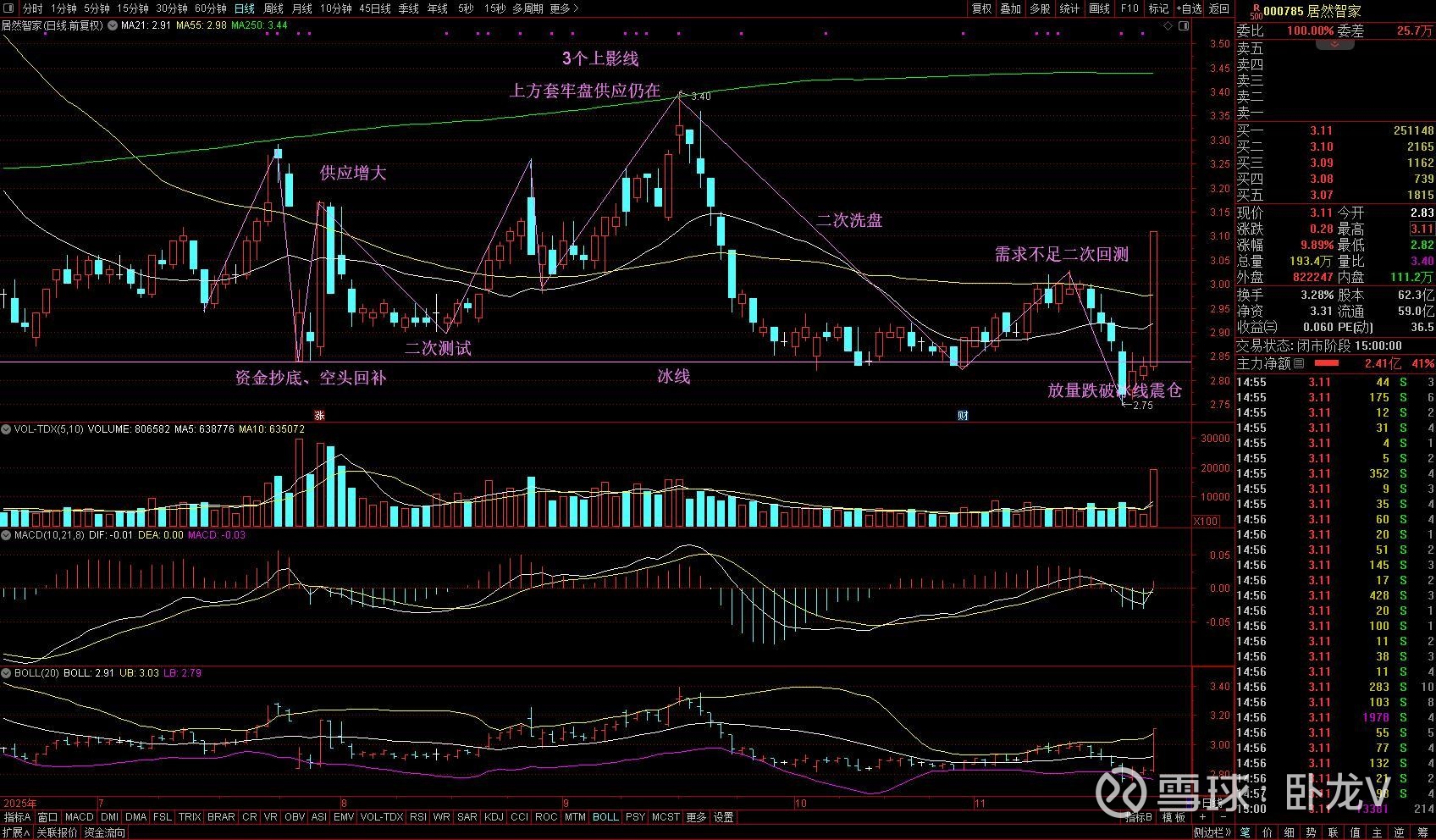 ,大幅下跌以后,2.84有大资金抄底洗盘,二次洗盘震仓、底背离后放量涨停,MACD转正,BOLL线触及上轨有扩张的趋势。上方套牢盘洗的很干净,下方筹码稳固。看涨!