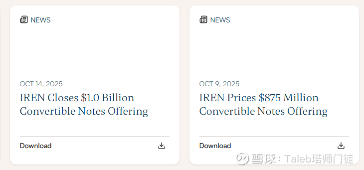 2025年12月,IREN 宣布发行总计20亿美元的可转换优先票据,分为两期: