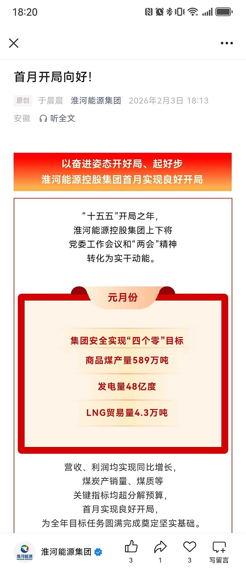 集团一月是正增长的,煤价同比去年一月是下降的,但是也不太好分解,今年发电量肯定是大超去年同期的。