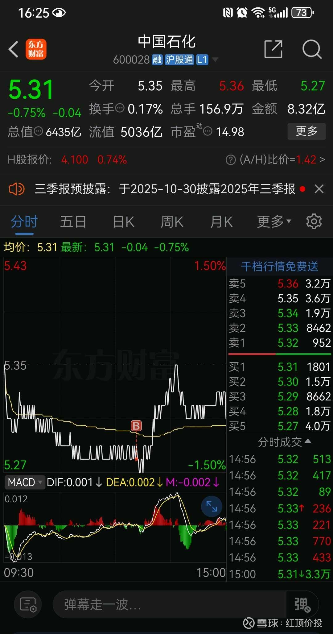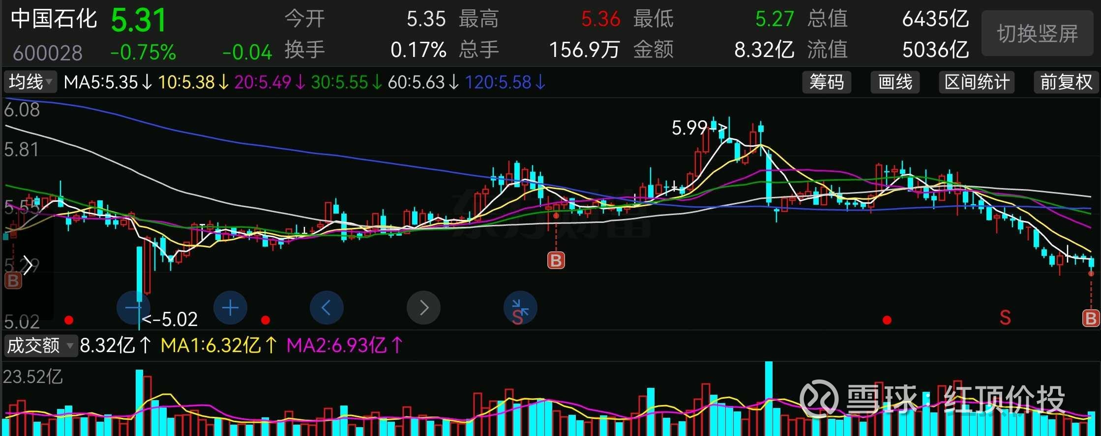 今天,我选择继续以5.28元加仓中国石化。这个决定在喧嚣的市场里显得格格不入:一家日均净利润1.39亿元的央企巨头,动态市盈率仅14倍,股息率超4.3%——却鲜有资金问津。