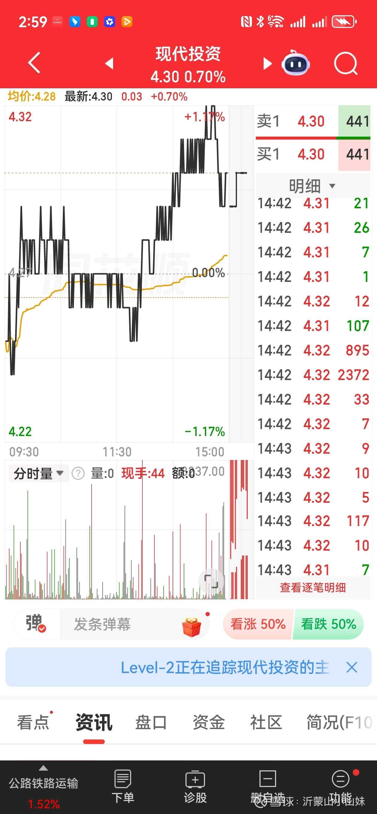 盘口大买单哐哐砸,现代投资(000900)直接把我拿捏住!主力真金白银往里冲,我也不玩虚的,就一句话:大买单不断,我就抱住你,不翻倍我不走!