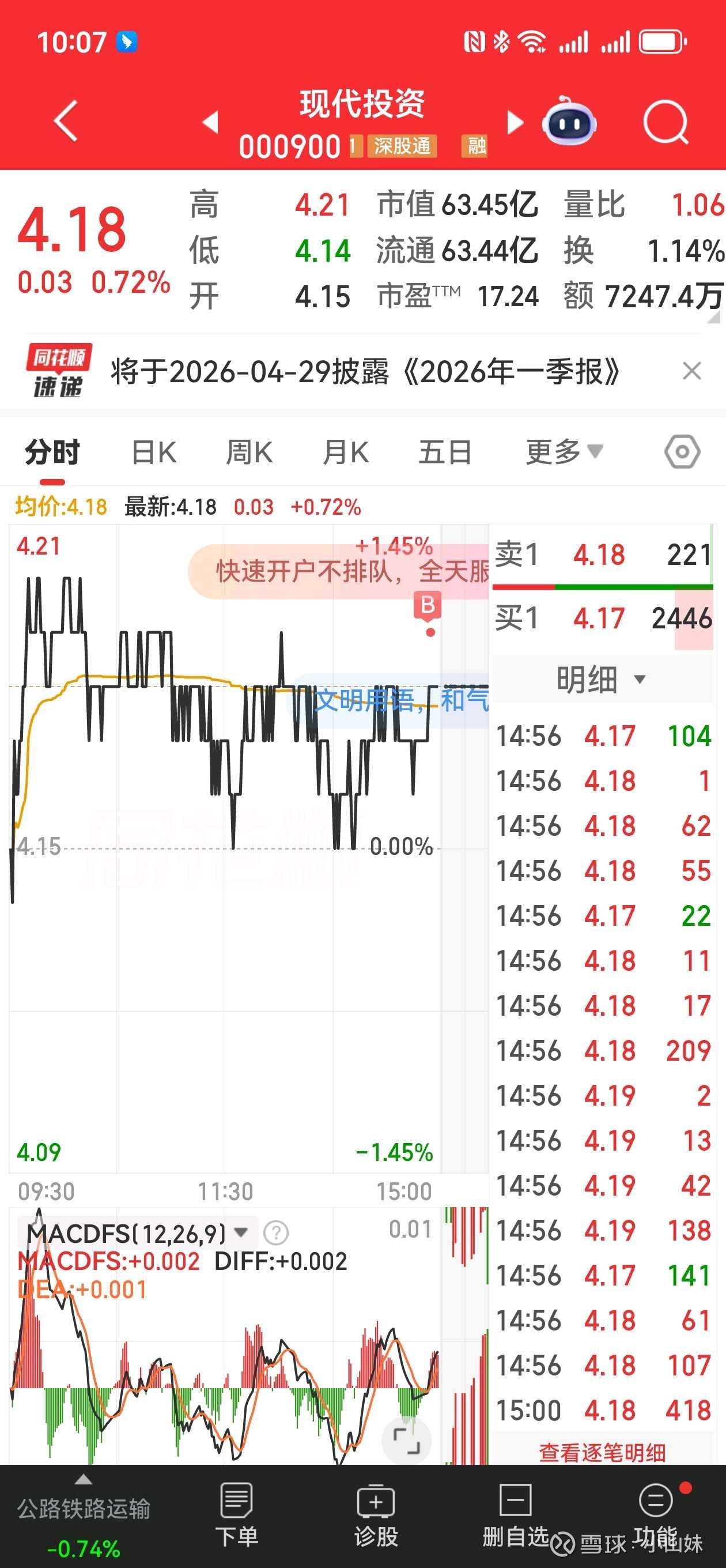 🐂 现代投资(000900):五大牛散会师,A股第一抱团
