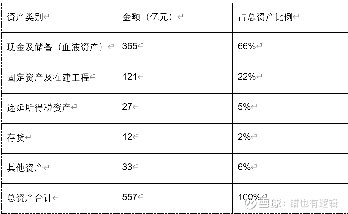 核心资产结构: