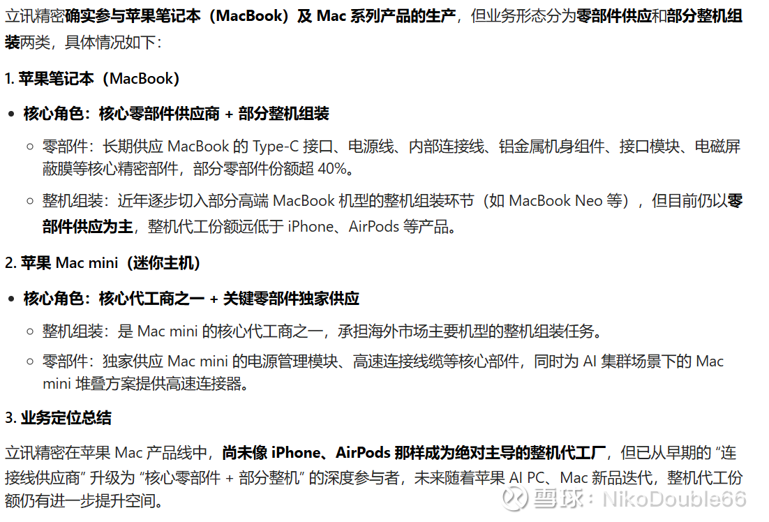 3. 对于新兴硬件无论是苹果还是其他厂商, AI 端侧应用的爆发,立讯作为代工厂能够有效承接这部分需求。