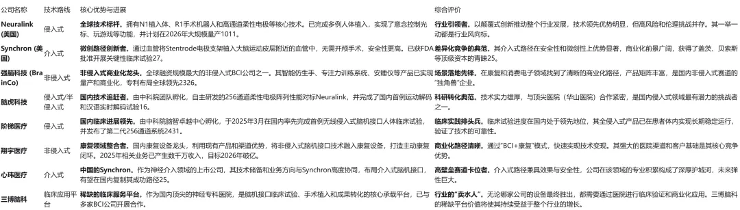 这类公司押注在技术最难、天花板也最高的侵入式/介入式路径上。