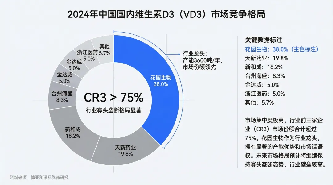 这行业,早就是寡头的天下。全球VD3产能,前五大公司占了九成以上。而站在塔尖的,就是那个我们反复提到的、打通了任督二脉的花园生物。