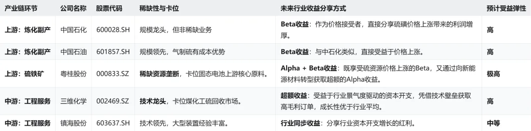 第一类,是“躺赢”的资源拥有者。主要指中石化、中石油这类巨型炼化企业。硫磺对他们来说,是近乎零成本的副产品。价格每上涨一分钱,几乎全是利润。他们是这轮行情最直接、最纯粹的价格弹性受益者。逻辑简单,但足够粗暴有效。