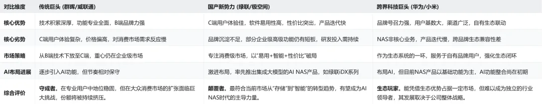跨界巨头(华为、小米):“生态大佬”。靠着品牌和自家手机/生态的联动能力入场。但NAS对他们来说,可能只是生态一环,投入的决心和速度有待观察。