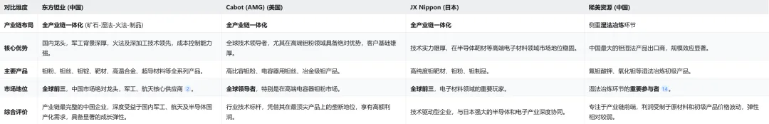 中游的冶炼加工巨头:这里才是真正的 “炼金术”核心。把粗糙的矿石,变成航空级的粉末、半导体用的靶材,靠的是长达数十年的工艺积累和技术know-how。这个环节壁垒极高,全球也就那么两三家龙头企业能玩得转。