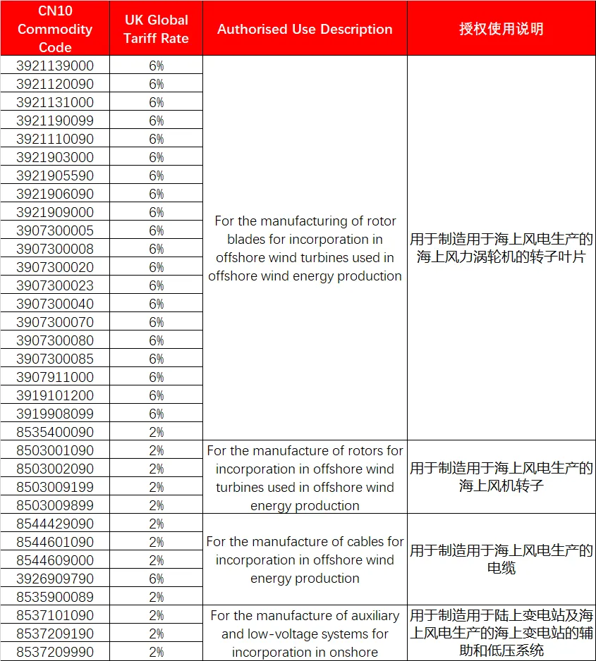 另一个信号是英国的。4月1号之后,他们要取消33项风电组件的进口关税。电缆、叶片、转子——这些东西之前要交2%到6%的税,现在归零。