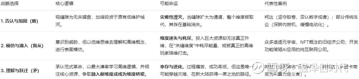 它指明了唯一的生路:既然灾难源于维度差,那么生存就在于 “主动升维” 。这要求个人和组织,将核心资源从“优化现有系统”中抽出,投入到 “理解并参与构建新范式” 中。这不再是可选项,而是生存必须。