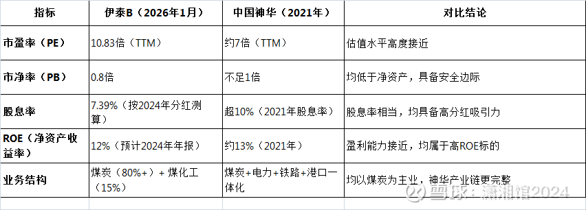 伊泰B当前的低估值+高股息+行业低谷期特征与2021年中国神华高度相似,符合散户乙“逆向布局高ROE、高分红优质股”的核心逻辑。但在业务复杂度、产业链完整性、分红持续性上存在差异,需谨慎评估: