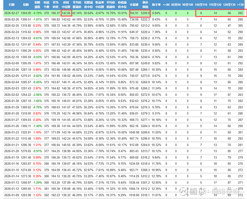 上周五可转债中位数142.6元。