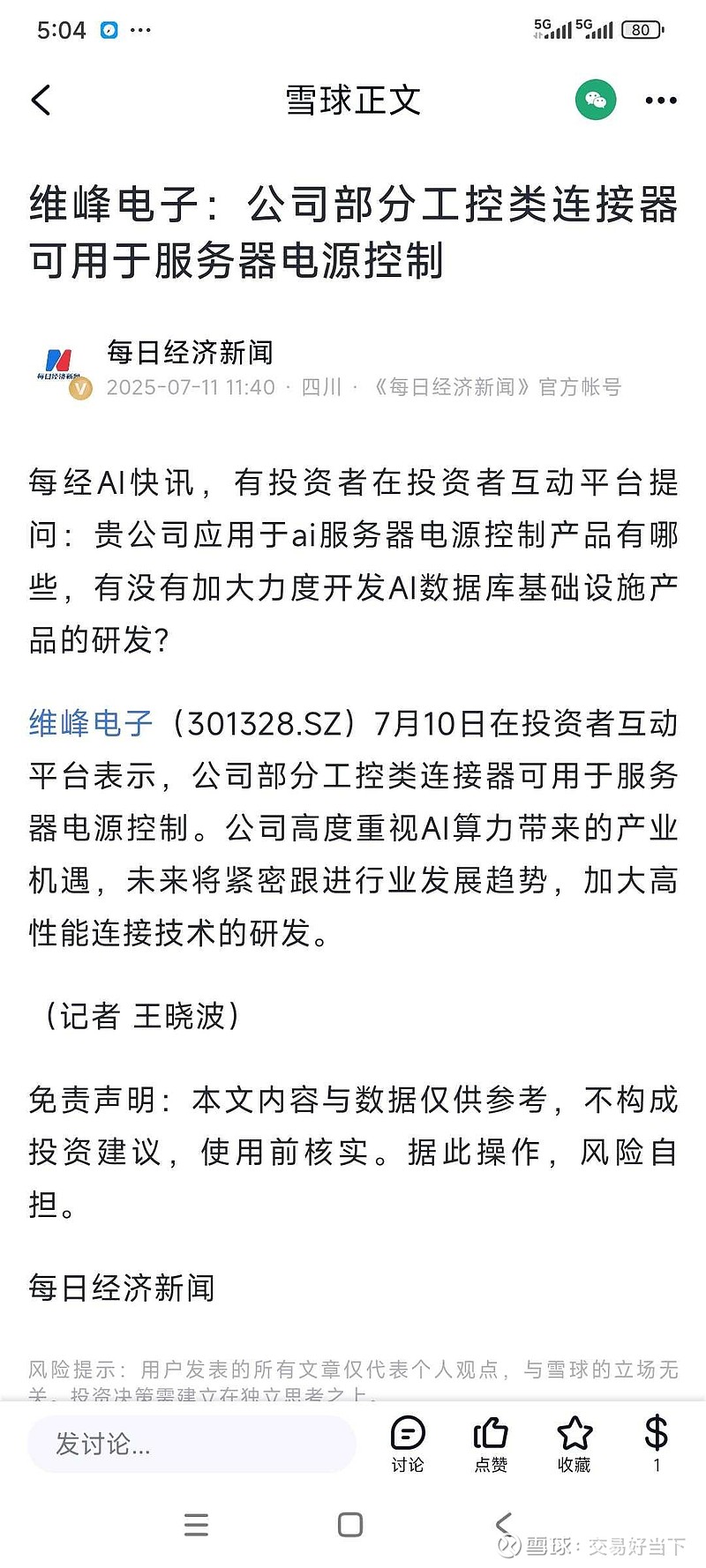 $维峰电子(SZ301328)$ 海外业务营收增长也很强劲,同比增长44.18%,毛利率达到了48.47%。海外主要客户是泰科电子,泰科的股价和业绩也达到了历史新高,之前供工控连接器,今年也切入了数字通信领域,也是间接供货英伟达。长期看200亿市值,短期看宇树31个自由度的机器人拉它一把,毕竟实锤供货宇树连接器。