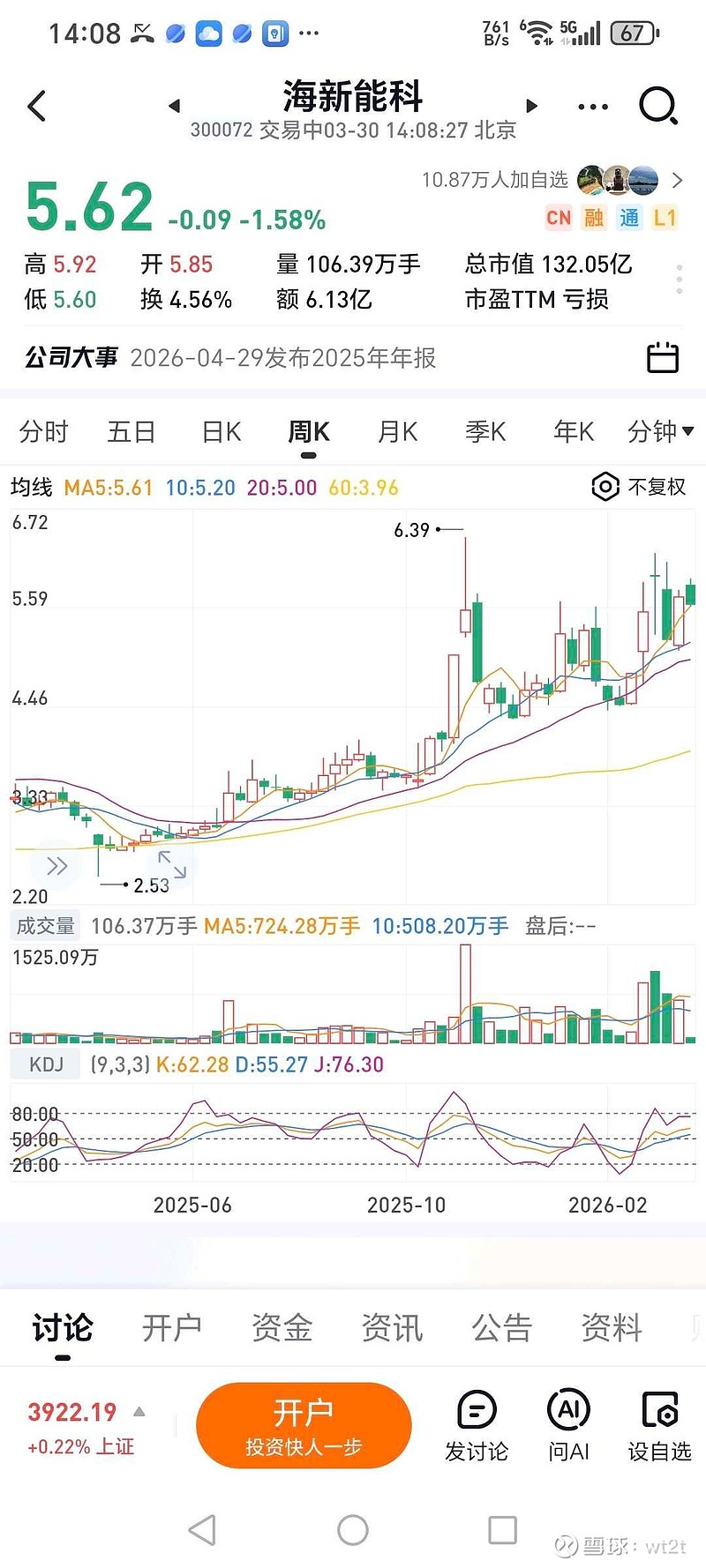 $海新能科(SZ300072)$