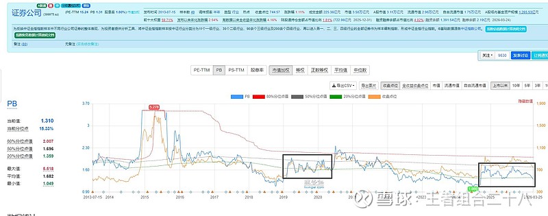 你说这轮是牛市吧,券商pb连50%百分位都没到,更别说高估位了。