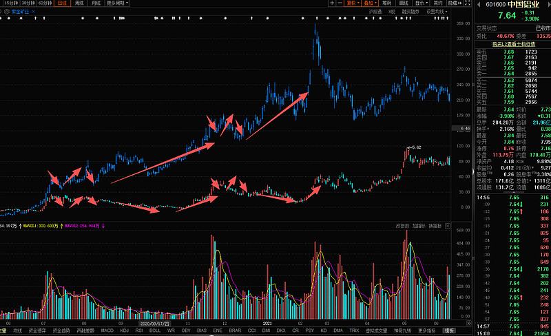 资源股这里有2个变种,一种是直接上去,一种是反弹再杀一波上去,我倾向于第一种