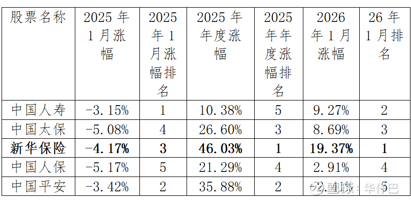 时光飞逝,2026年1月份已经过去了,对1月份保险股进行一下跟踪总结: