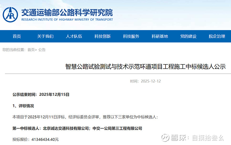 $中公高科(SH603860)$ 这标给了中公的兄弟公司,没直接给中公有点遗憾,不过也对未来增添了资产注入的预期。北京诚达交通科技有限公司在中路高科全资子公司只排第四,就能承接这么重要的项目,侧面说明公司众多优质资产尚待上市。