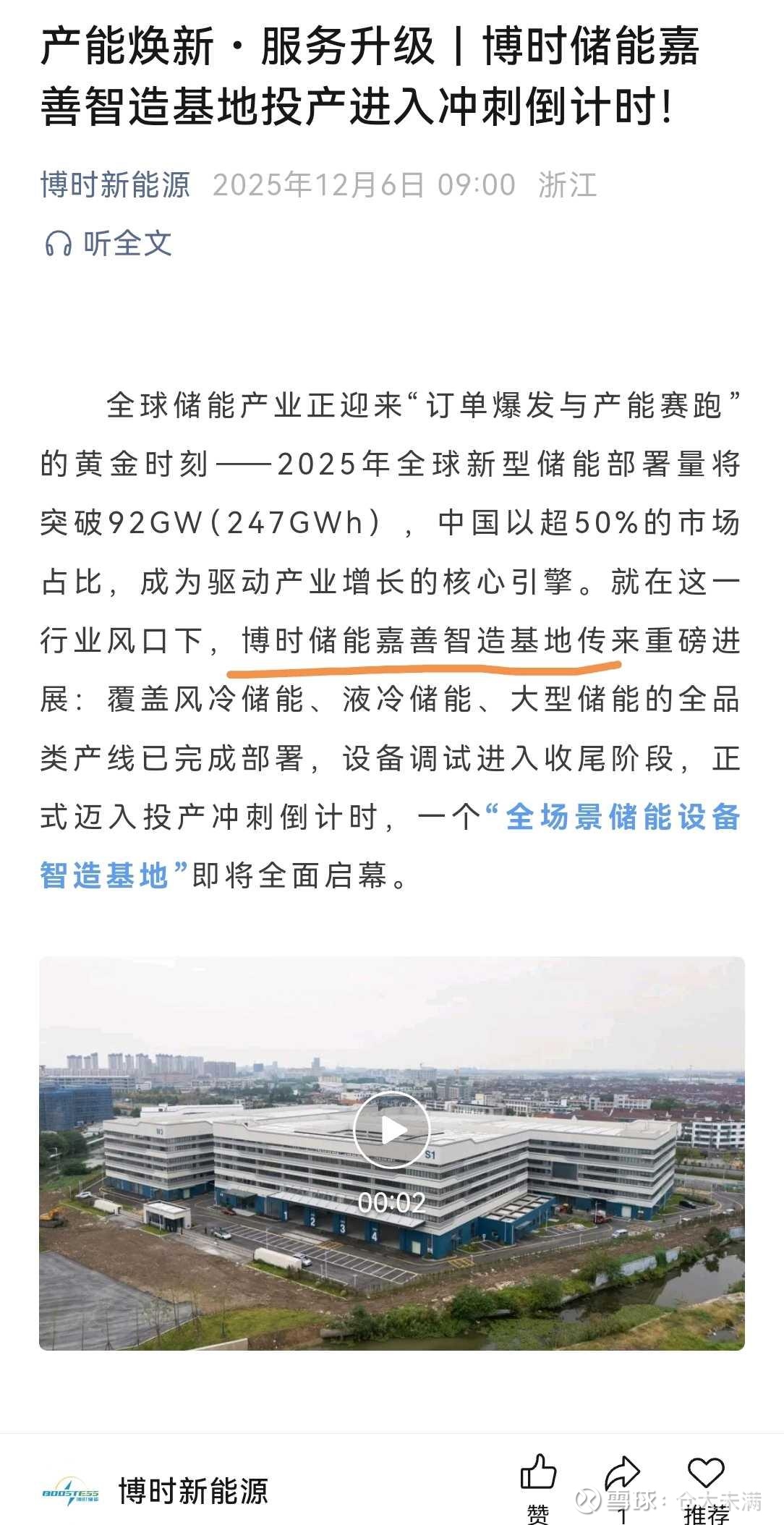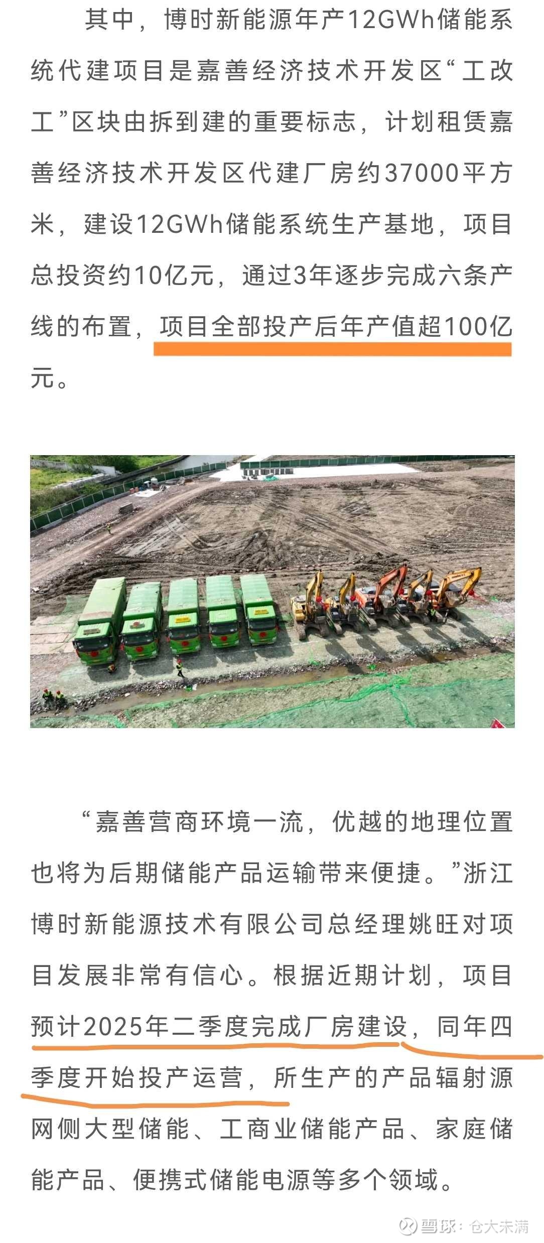 “博时新能源”是储能解决方案提供商,其嘉善基地马上竣工。(更详细信息有兴趣的自行查询)。