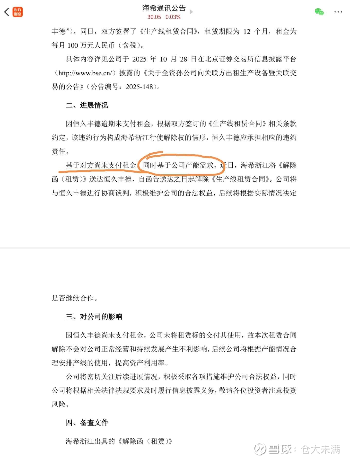 1.海希说恒久未付租金,又公司要立马使用这个产线(该公司最近有项目中标),就不出租了。恒久说产线需要改造(与海希合同不允许改造),又海希没有交付,就不租了。