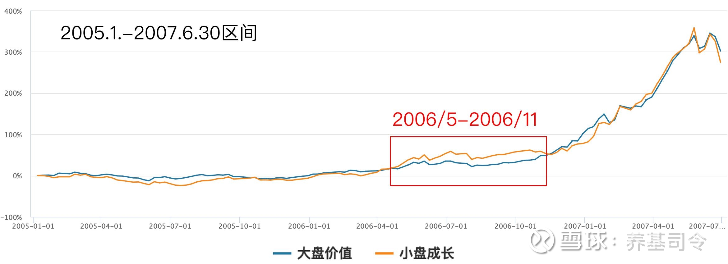 比如,2005年-2007年是金融和周期板块的牛市,市场风格偏向大盘蓝筹,整体表现较强的主线板块大多数为顺周期行业,包括券商、有色金属、房地产等。但是2006年5月-11月牛市中期,市场风格却出现较明显的变化,从大盘价值快速向小盘成长切换,低价股、亏损股反而活跃。