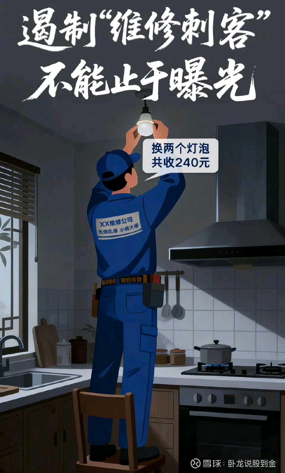 刚才还看了新闻,有一个先生家里灯泡坏了,换了两个灯泡,上门服务240块。 这个卧龙就比较纳闷了,换个灯泡的事还需要找人上门维修吗?难道自己不可以动手吗?既然你动不了手,要求别人动手。240块你就别嫌贵了。