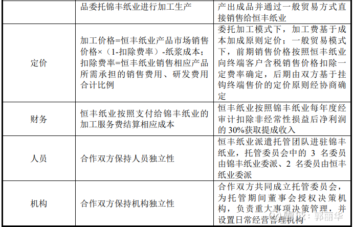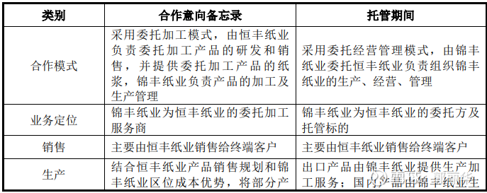 2022 年 10 月,锦丰纸业(甲方)与恒丰纸业(乙方)签订《委托经营管理协议》,主要约定内容条款如下: