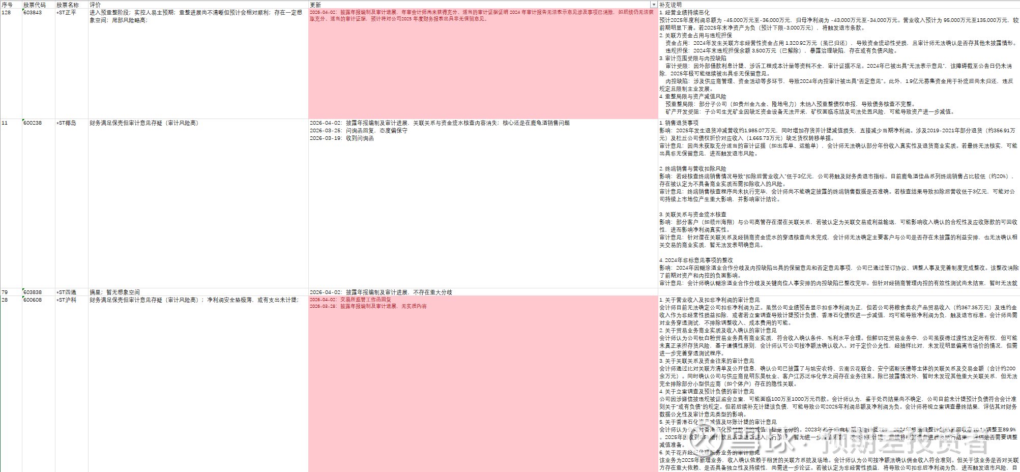 注意:2025年报审计预披露即将展开(分别为年报披露前20个交易日和10个交易日,持有*ST股票的投资者需特别重视审计情况的进展,一旦黑天鹅爆发将面临巨大损失!!!)。如果披露过晚,业绩踩线、审计风险不是比较低的,如果没有特别的信仰可以暂时先规避一下。