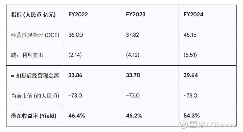 然而,剥离噪音后,我们看到的是一台每年稳定产生45亿现金的机器,目前仅以约73亿人民币的总价在市场上出售。这隐含了极高的赔率。