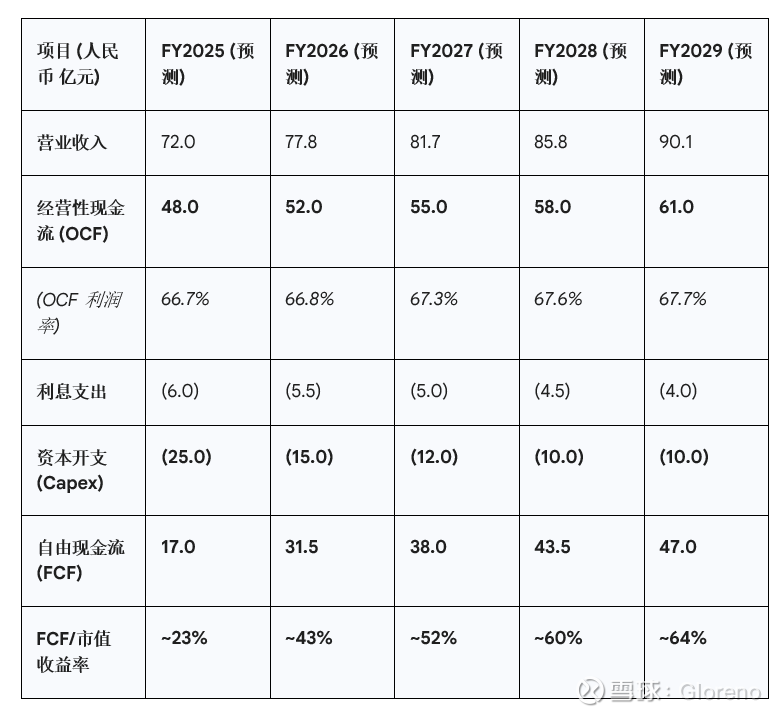 FY2026(爆发期): 随着Capex降至15亿,FCF将瞬间跃升至31.5亿。此时,公司的估值将显得极度便宜。