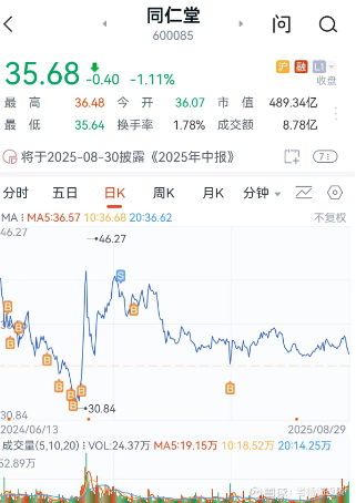 8月22日,同仁堂国药2025年中报显示,上半年公司主营收入7.62亿元,同比上升14.63%;归母净利润2.35亿元,同比增长6.86%。我的评价是中性偏负,略低于我的预期,主要由于安宫牛黄丸已经涨价了20%+,营收才增长了14.63%,说明销量没有增长甚至下滑。