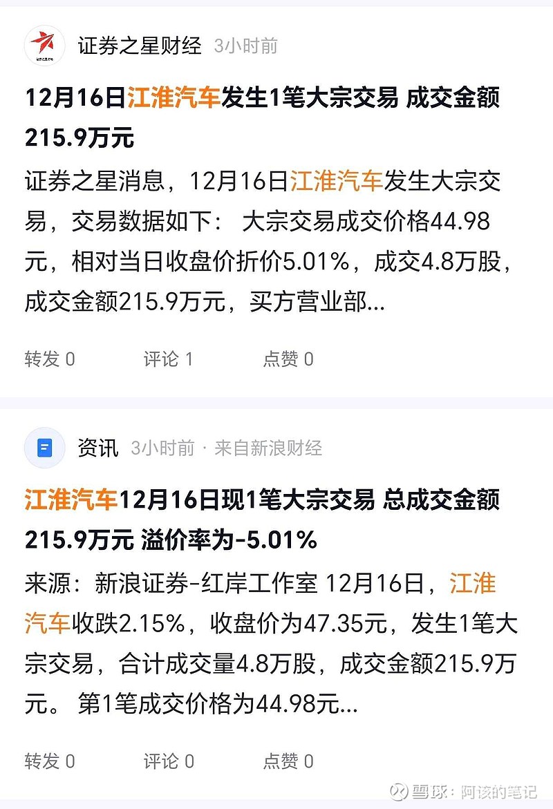 $北汽蓝谷(SH600733)$小白看不懂为啥一个L3消息能让北汽直接几十亿封单封住涨停而且还是在大盘这么跌的情况下拉的涨停这种能够视为走势很强吗?$江淮汽车(SH600418)$江淮今天的大宗交易44.98元一股才两百万多为啥很多人说这会让股价跌到45以下去没懂