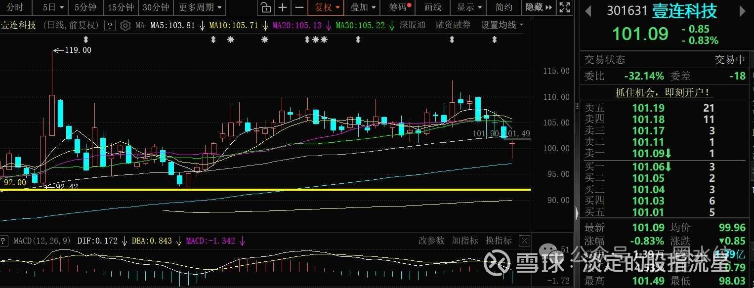 技术面:1.股价沿20周周线上升,于1月30日上午回踩,也有可能继续下探到92元,若在此后企稳,延续周线上行趋势的概率较高。