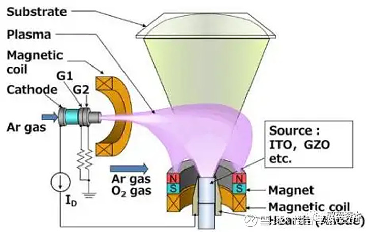 反应式等离子体沉积(RPD):本质也是PVD的一种,不过是通过等离子发生器发射等离子流,经过磁场偏转打在坩埚中的靶材上,使之升华后沉积在基片上。其特点在于:1)镀膜过程中粒子能量小,避免基底损伤;2)可在相对低温条件下沉积高质量薄膜;3)原材料利用相对较高;4)技术壁垒较高,专利被日本住友掌握。