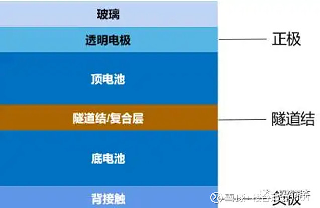 两端叠层电池:在底层电池基础上制作顶层电池,中间通过隧道结/复合层连接,两层电池为一个完整电池的两个部分,电极也只需从电池最上和最下两端引出。两端叠层电池本质是一种拥有两个P/N结的双节电池,顶电池和底电池工艺相连结合紧密,因此需要有良好的兼容性,包括有良好的光学设计、物理电性能相互匹配等,其优势在于一体化制造有利于节省工艺成本,并可以对当前已经成熟的晶硅、碲化镉等太阳能电池产业进行配套升级。