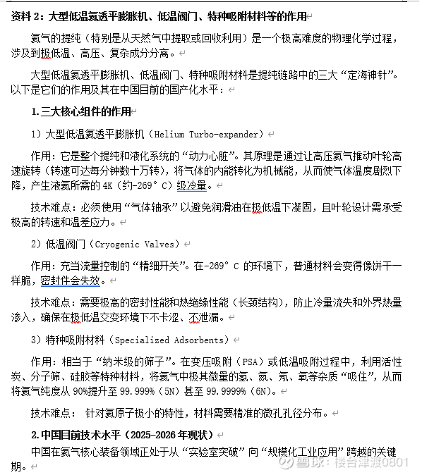 目前,国内虽然在成套装置的设计上有所建树,但装置中的核心动设备(如大型低温氦透平膨胀机)、关键的低温阀门和特种吸附材料,仍大量依赖进口。这种技术依赖使得国内提氦产能的稳定性与扩产周期,直接受制于国外核心部件的供应。