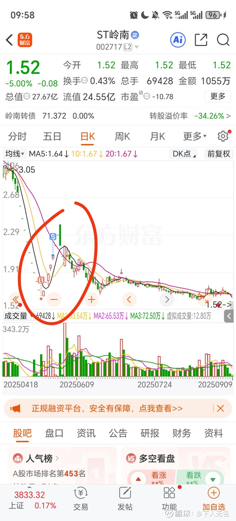 $ST岭南(SZ002717)$ 一如既往的,此贴仅为记录,并非为了落井下石或者其他,在5月底的暴跌以及反弹中,侥幸参与且赚到了一点钱离开,因为担心有人跟随交易,还专门开贴网页链接解释:ST岭南本身并不够好,风险太高,尽量远离!!当时市场情况狂热,有人攻击,有人谩骂,有人觉得吃饭砸锅。。。时至今日再回头看,最起码,大概是个有良心的人,至于那些攻击/谩骂的人,希望你们一切安好。