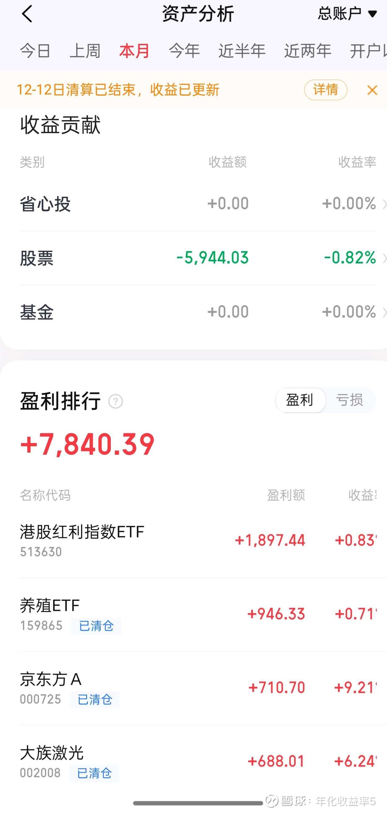 11月开始时的ETF一通买买买自己眼睛都看花了,12月把同类型的合并,又是补仓,把前面买的都调整一下了现在账户持有: