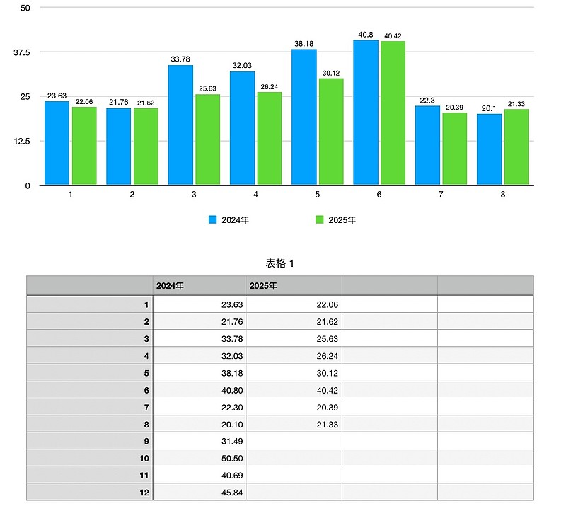 真难得,8月开始反超去年同期了,期待这是反转的开始