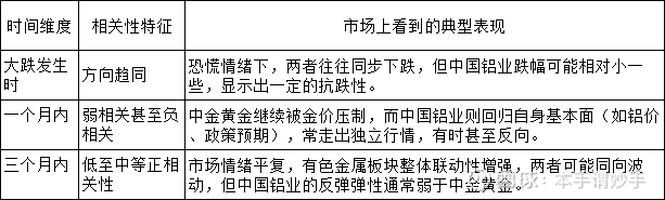 市场情绪平复,有色金属板块整体联动性增强,两者可能同向波动,但中国铝业的反弹弹性通常弱于中金黄金。