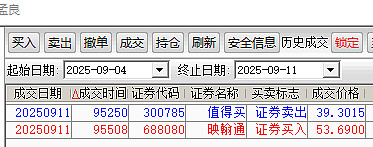 $值得买(SZ300785)$ 今天因为送儿子新生大学报到在武汉忙了一天晚上才赶回家,上午在孩子新生宿舍宿舍忙里偷闲的做完作业:9点52分39.31元止盈了值得买,转身9点55分在53.69元买进了老朋友---688;080映汗通!详见图一;明天大概率还是没时间,因为明天要送闺女再去一趟武汉新生报到。