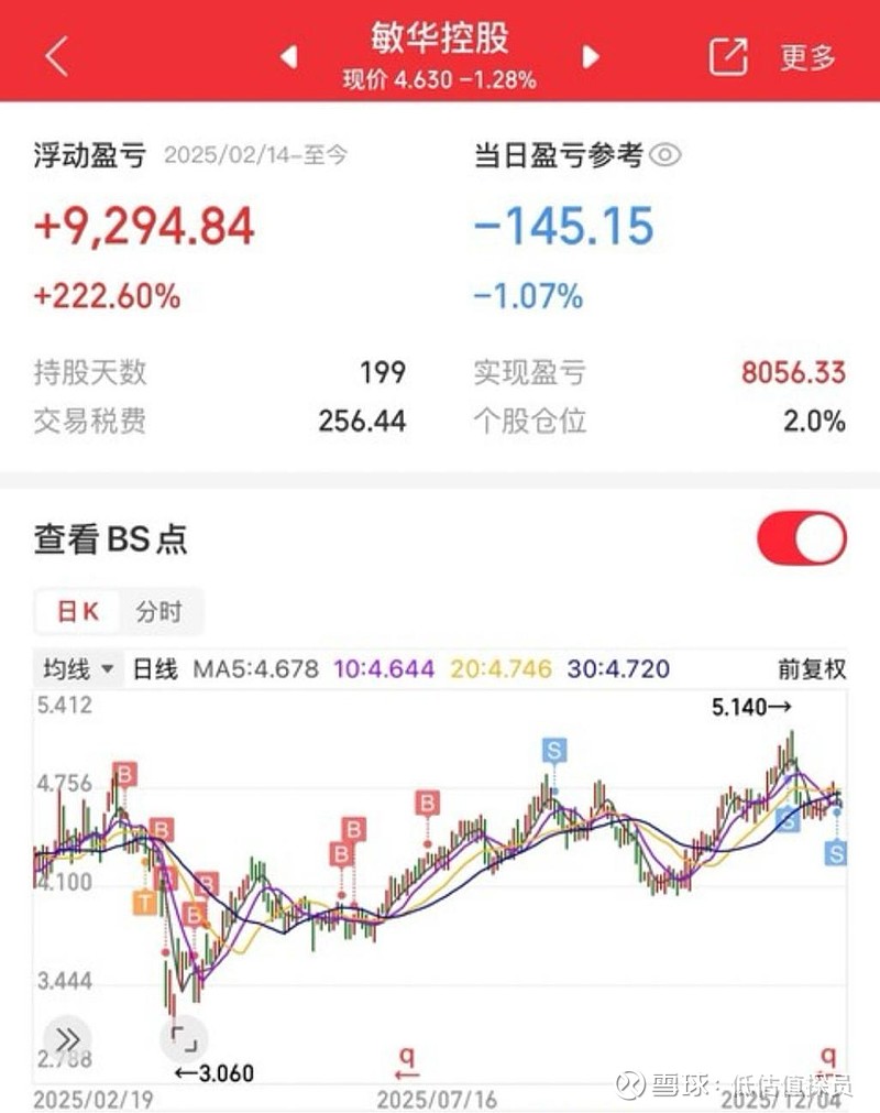 今年年初开始建仓敏华控股,建仓理由是过去十多年ROE维持在15-30,当时买入PB1.4左右,感觉低估了。公司竞争优势判断上,对比几个上市的家具公司的财务,感觉敏华跟顾家不相上下,但是敏华的PB更低。买入之后开始下跌,期间越跌越买,在特朗普贸易战威胁加关税期间跌幅达到顶点,当时只有1PB出头。当时我计算了出口美国业务的占比,大概营收占比1/4,模糊计算这部分营收清0,利润减少1/4,还有15亿利润,对应140亿市值依然觉得不贵,因此仓位也买成了10%重仓。当时还有一个看好的理由是董事长黄敏利自掏腰包购买公司股份,我的买入成本比他低。
