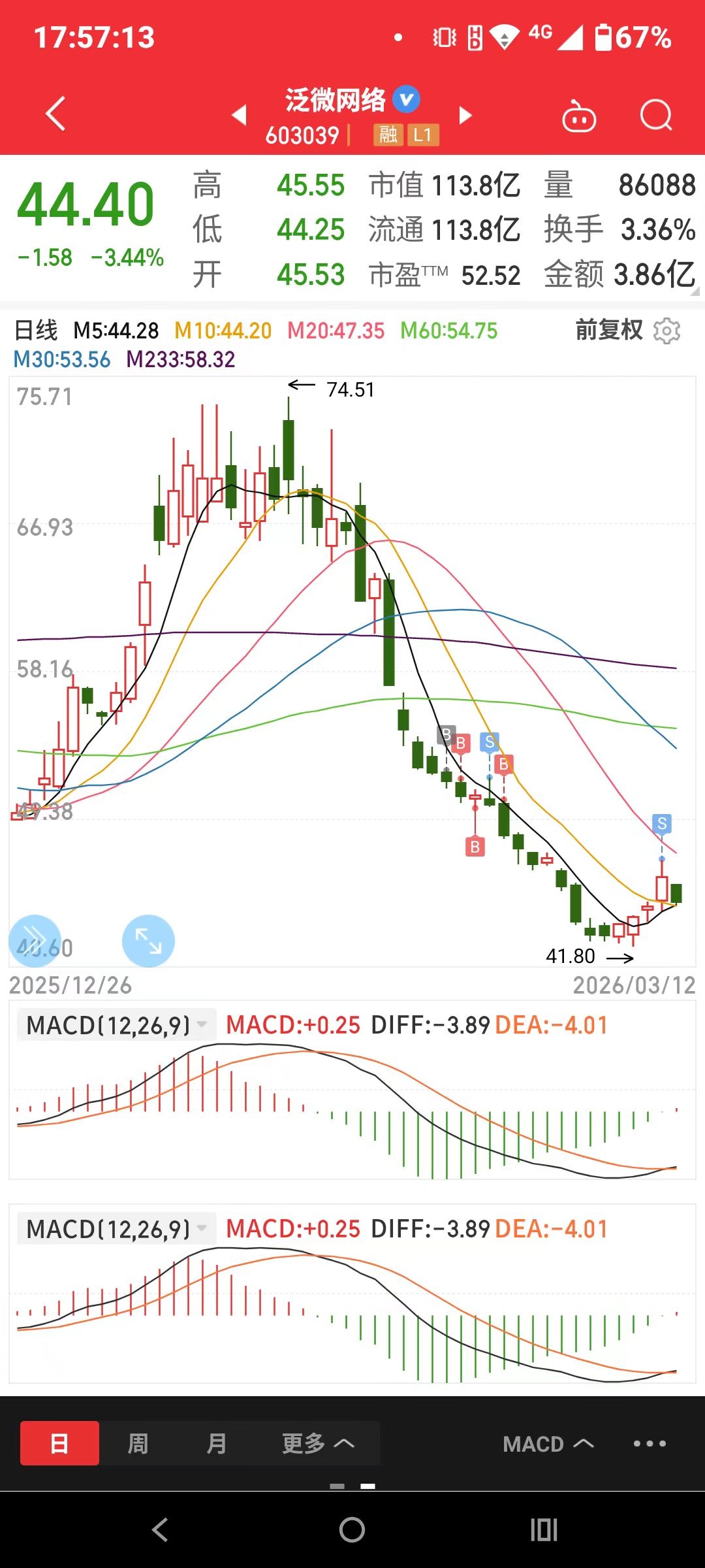 2)对股票的顶底认识有所提高,顶部的构建与底部的抵抗挣扎可以说通过煎熬的持有和观察对细微之处有更进一步的了解 泛微在底部构造区域那几天低开拉升下砸最后又拉升构筑的底部手法让我观察到了 。