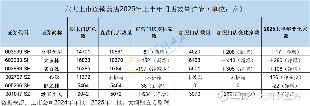 从行业整体来看,2025年上半年老百姓净增加盟店305家,大参林、益丰分别新增加盟店413家、208家,漱玉平民加盟店净减少627家,健之佳仍坚持零加盟。