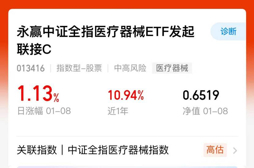 场外同步标的$永赢中证全指医疗器械ETF发起联接C(F013416)$ (A类:013415 C类:013416)同样表现不俗,昨日上涨1.13%,为场外群体搭建了便捷的参与桥梁。
