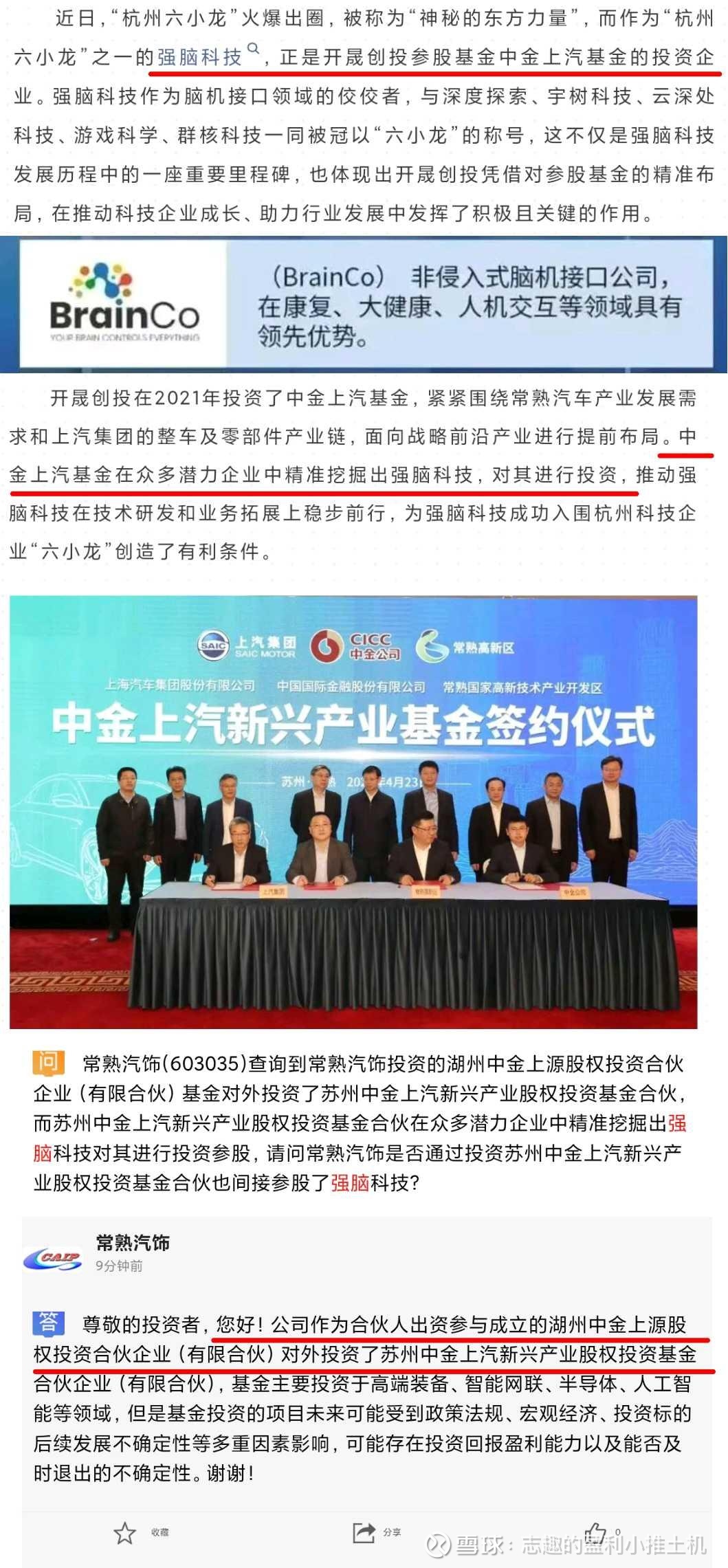 常熟汽饰盘后董秘最新刚刚回复投资脑机接口四小龙之一强脑科技得到验证