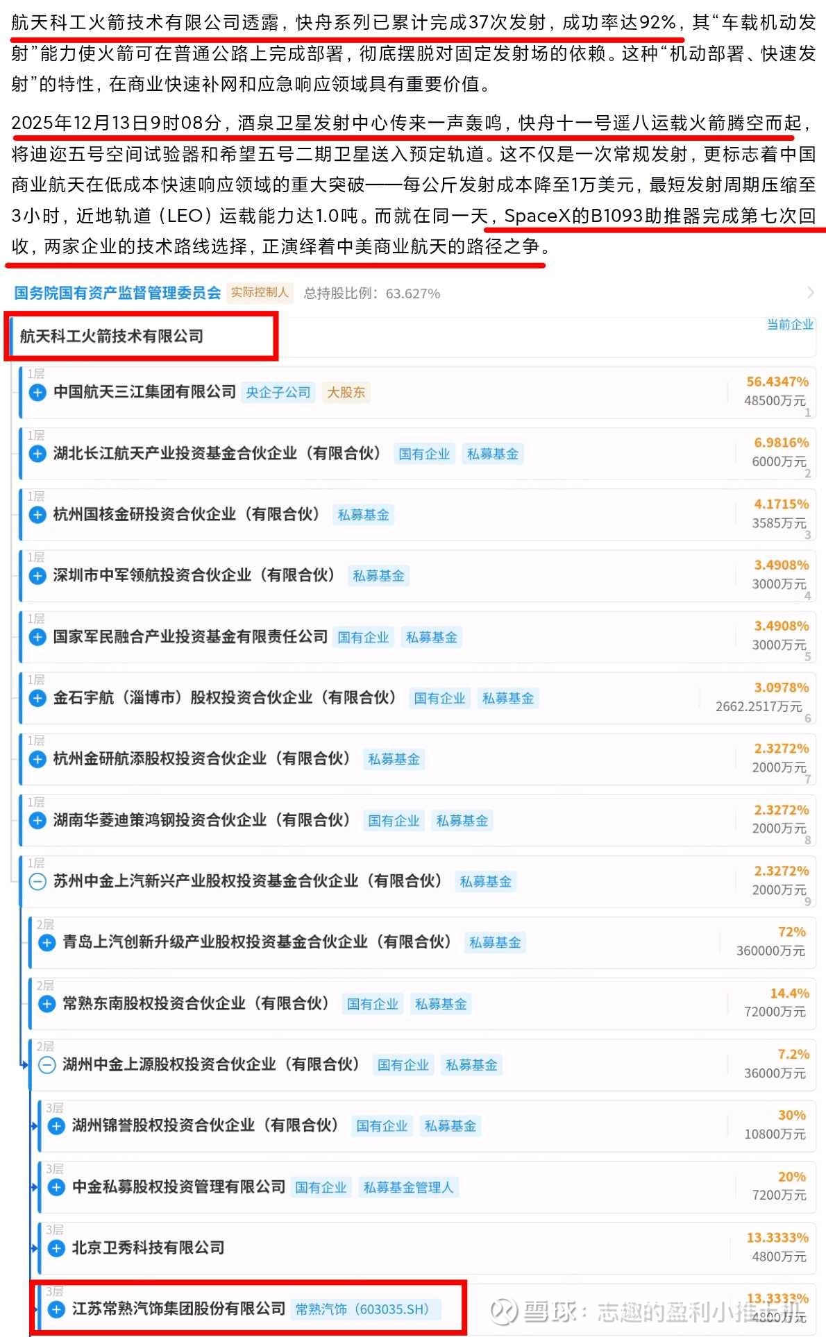 常熟汽饰投资的苏州中金上汽参股了商业航天和脑机接口的航天科工火箭 强脑科技都是知名企业