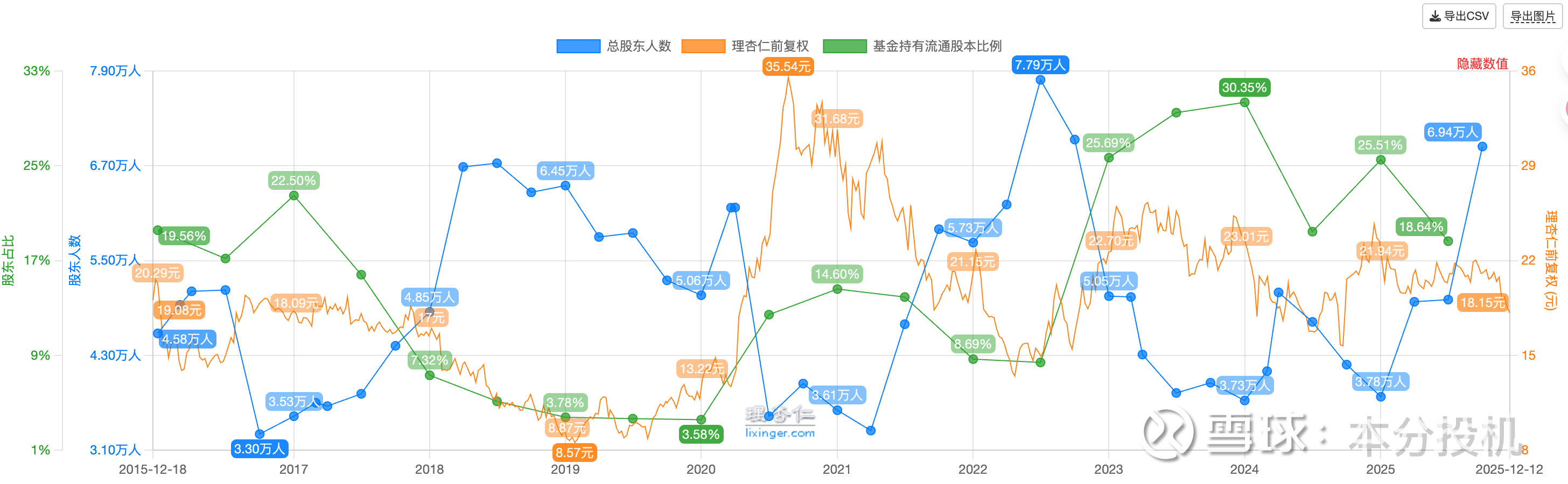 考虑三季度基金对人福的减仓趋势,目前持有人福的基金持仓也应该在 15% 左右,其中有 9%+ 的持仓进入了基金的前十持仓,典型代表是鹏华和嘉实。